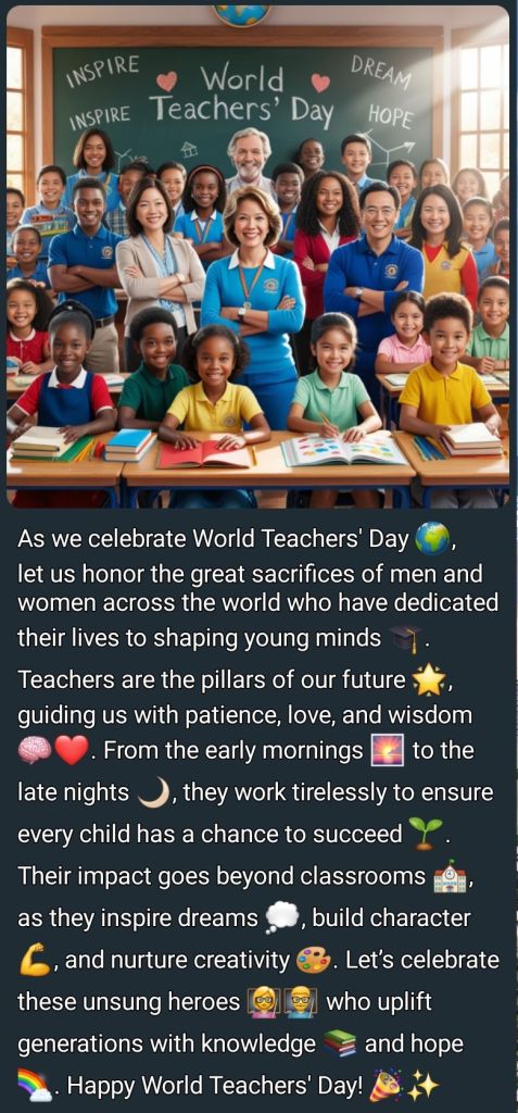 Annually, on October 5th, it is International Teacher’s Day. Interestingly, what I notice every year, since becoming a teacher in 2022, is that teachers (and we can add education NGOs/NPOs, because usually former teachers work there) all over social media celebrate each other more that the rest of the world actually knows about and appreciates this day.